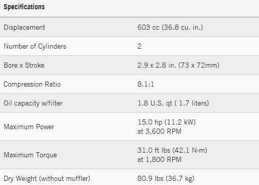 | Displacement | 603cc |